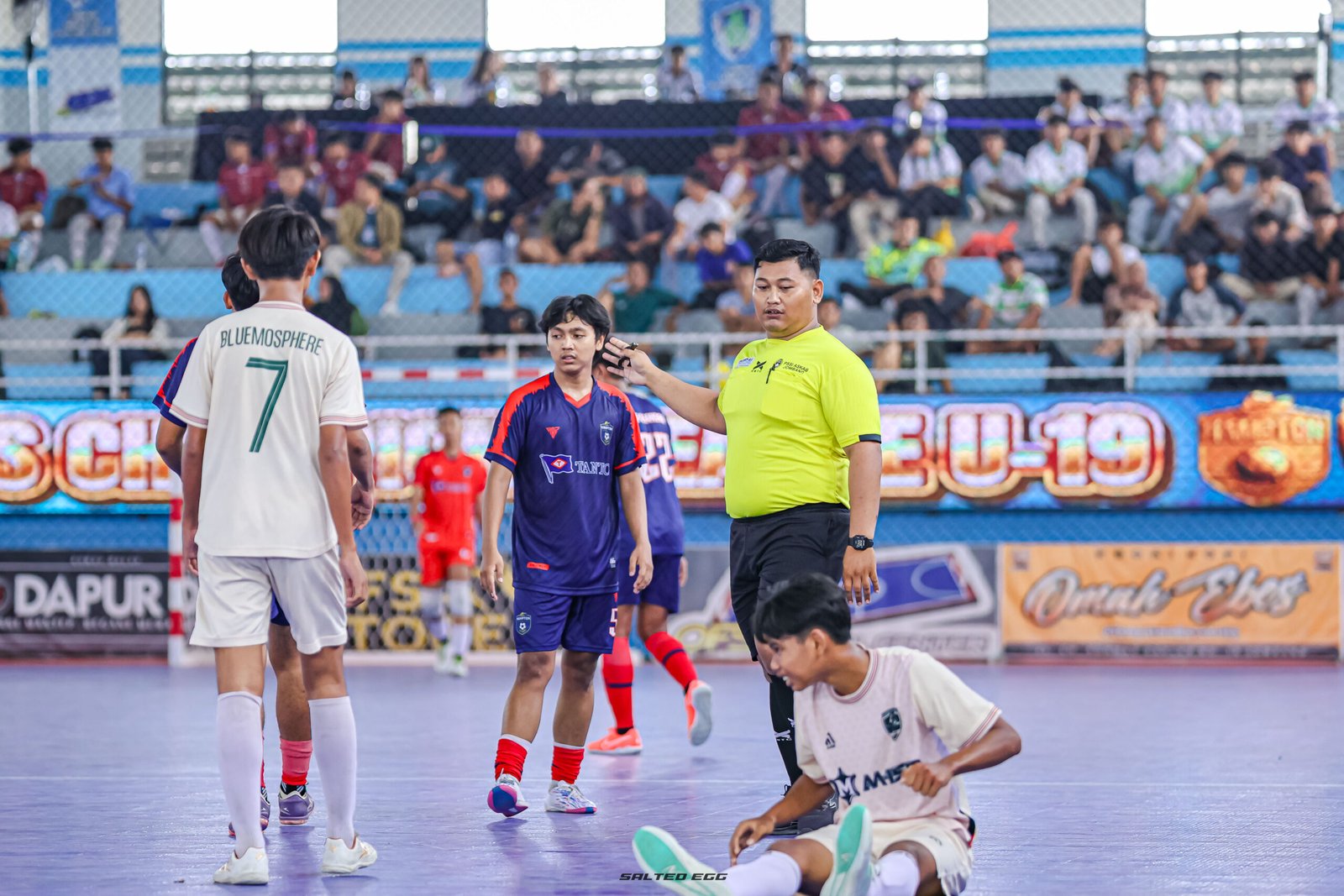 Pertandingan berjalan ketat sejak awal. Bluemosphere tampil disiplin dan efektif memanfaatkan peluang hingga mampu menutup babak pertama dengan keunggulan 1–0. Hampton FC terlihat berusaha membangun serangan, namun belum berhasil memaksimalkan peluang menjadi gol pada paruh pertama.